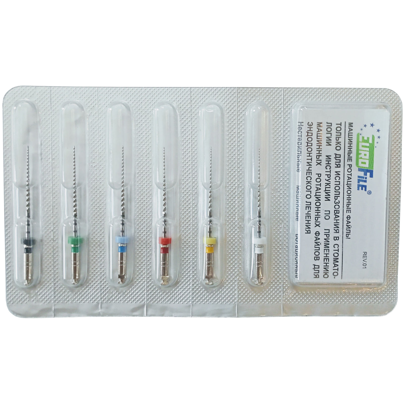 EuroFile DK-Files это система машинных конусных никель-титановых файлов (аналог ProFile). DK-Files обладают высокой режущей эффективностью, а специальная форма лезвий способствует эффективному удалению дентинных опилок из корневого канала. Файлы применимы в большинстве клинических случаев для прохождения, очищения и расширения корневых каналов зубов. Обычно, для подготовки к обтурации достаточно четырех файлов.