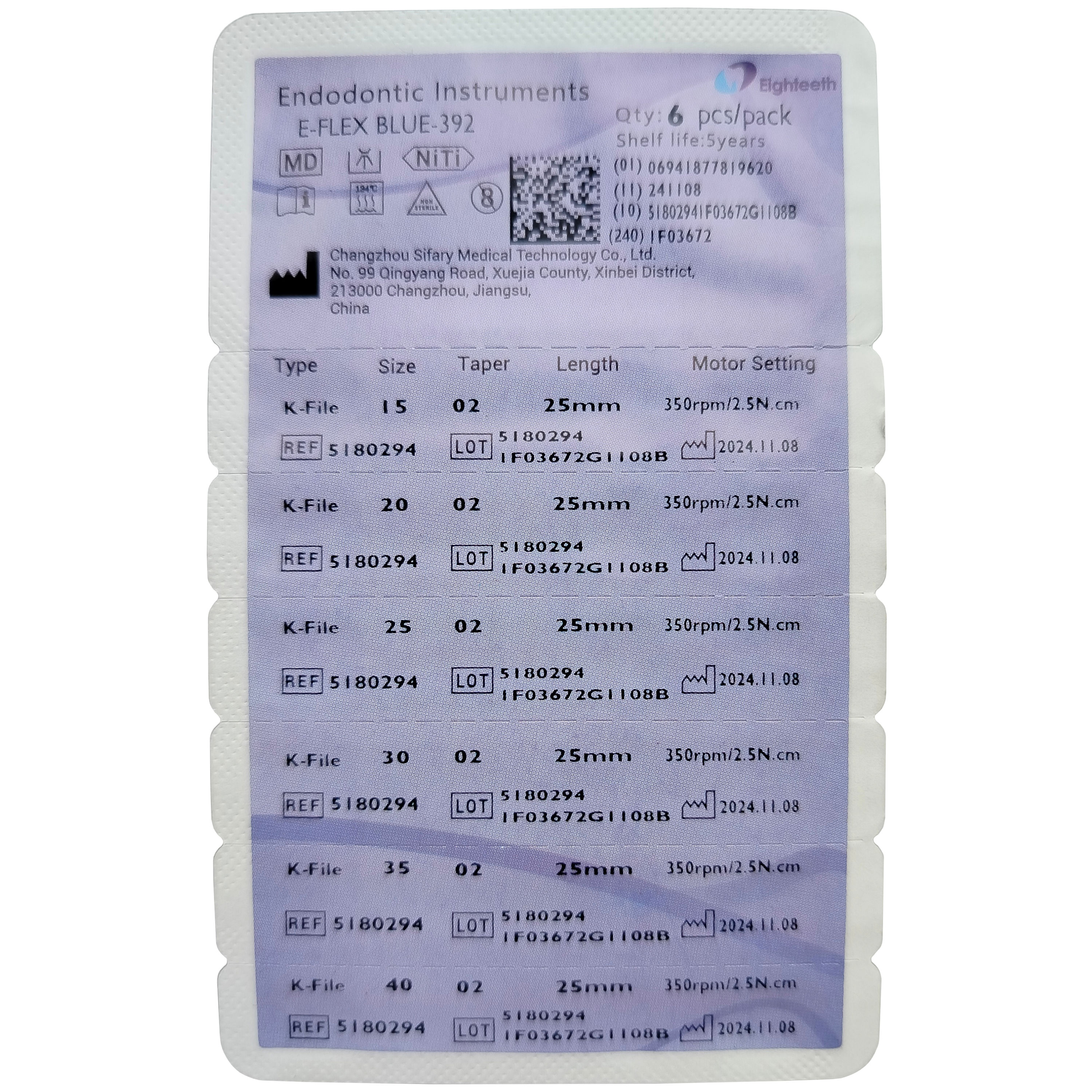 Каналорасширители угловые Eighteeth E-Flex Blue Packs 040 .02 №15-40 25мм 6шт (6028690/6028640)