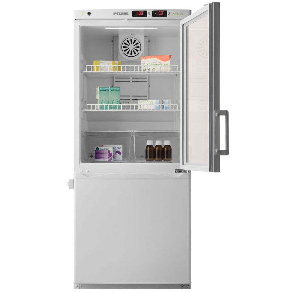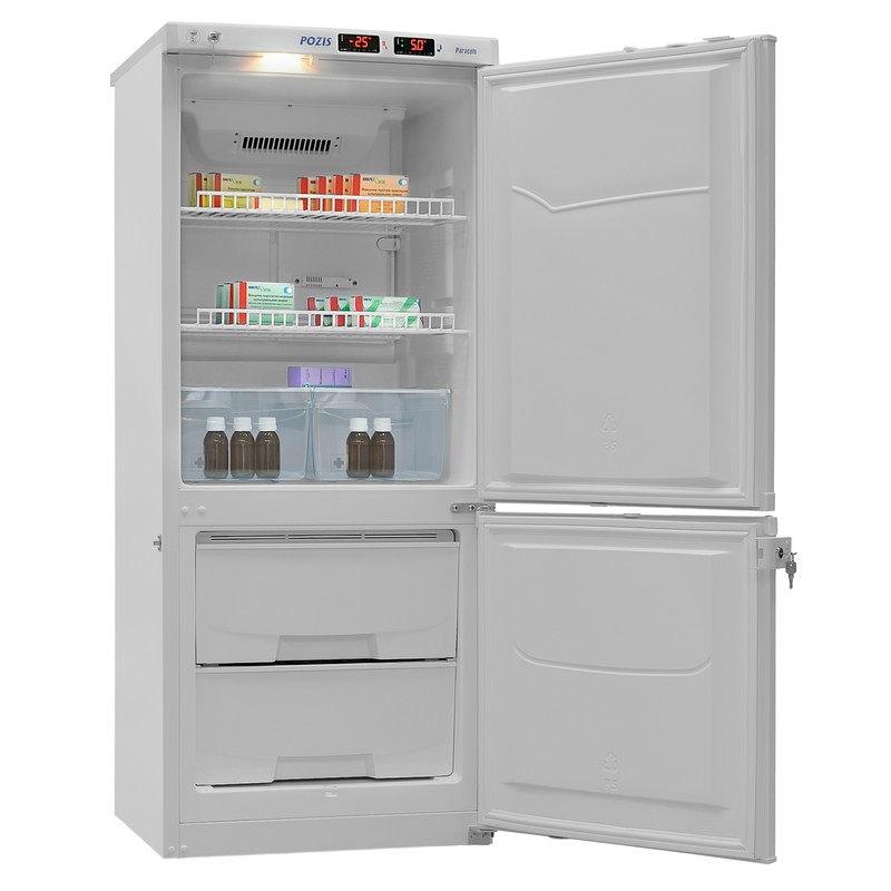 Холодильник обеспечивает потребность в хранении лекарственных препаратов, средств, образцов, тест-наборов и других фармацевтических средств при температуре от +2°С до +15°С в холодильной камере и при температурах от минус 10°С до минус 25°С в морозильной камере.