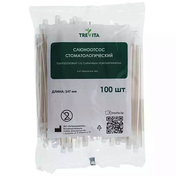 Слюноотсосы одноразовые Trevita прозрачные 100шт