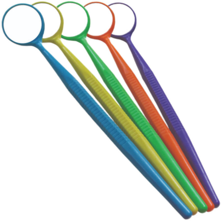 Стоматологическое зеркало с пластмассовой ручкой. Ассорти неоновых цветов.