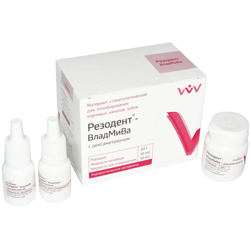Резодент с дексаметазоном это антисептический материал на резорцинформалиновой основе для пломбирования корневых каналов зубов. Для оказания эффективного противовоспалительного и противоаллергического воздействия порошок содержит активную добавку, 0.2% дексаметазона.