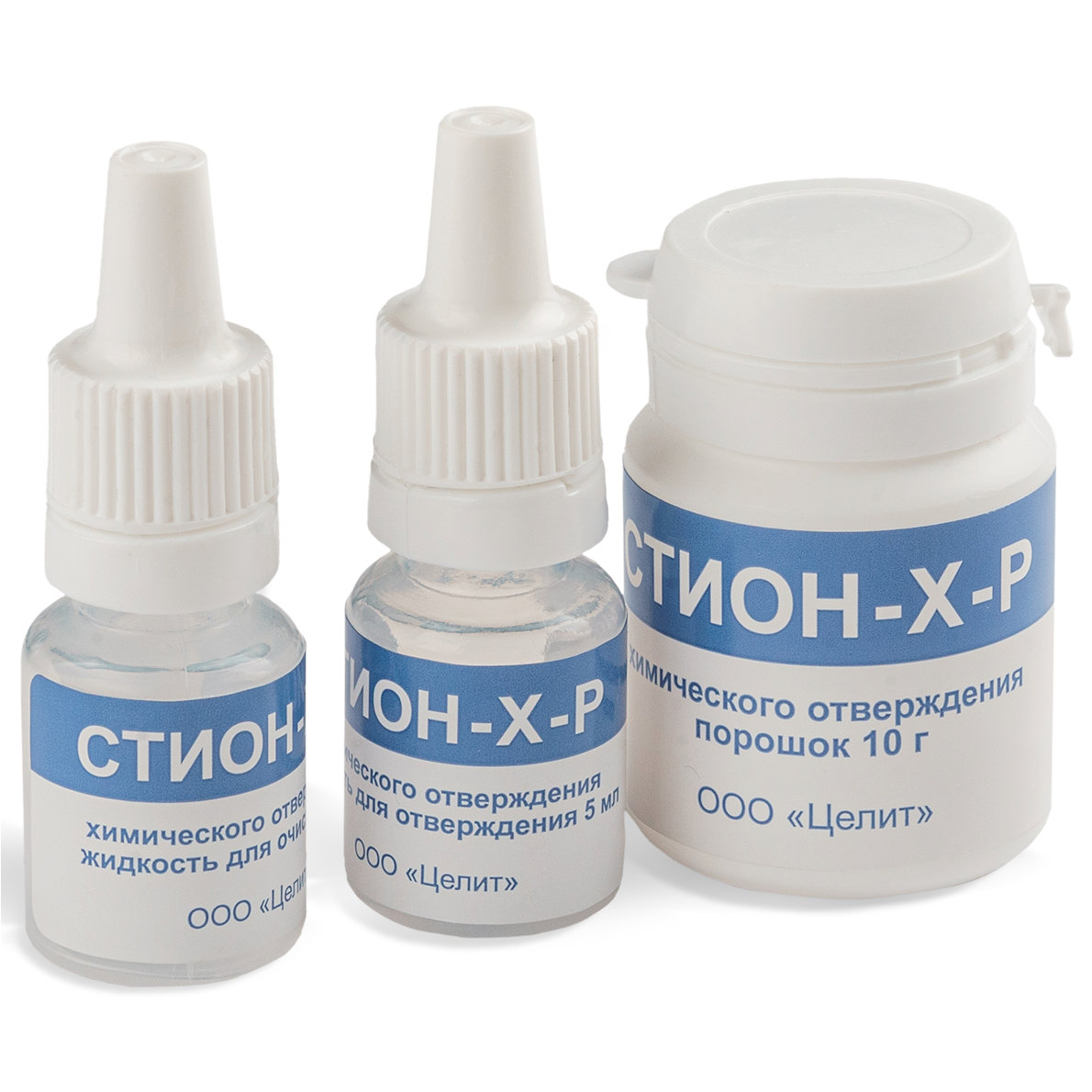 Цемент Стион относится к системе порошок-жидкость. Порошок представляет собой тонкодисперсное алюмосиликатное стекло с добавлением красителей и других веществ, жидкость является водным раствором полиакриловой кислоты с различными добавками. В водозатворимых цементах жидкостью является дистиллированная вода.