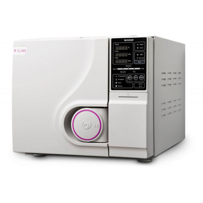 Модель представляет собой стандартный B-класс стерилизации с трехкратным вакуумированием и сушкой. Остаточная температура простерилизованного инструмента – менее 0,2%. Автоклав открывается сверху для залива дистиллированной воды, что обеспечивает удобство чистки и соответствие стандарту EN13060.