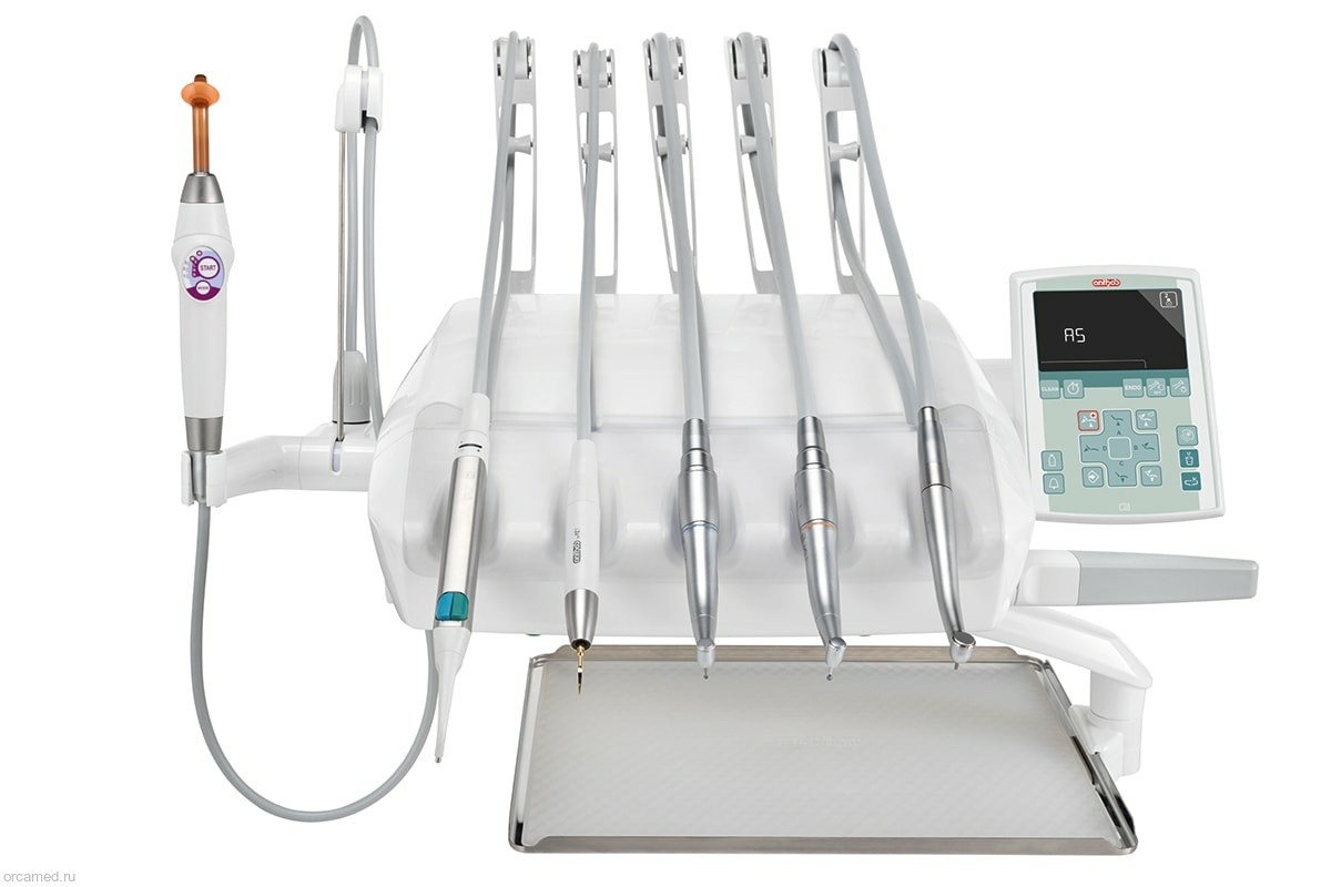 Модуль врача с современным дизайном имеет преимущества эргономичного расположения инструментов и гарантирует, что наконечники можно легко брать из любой рабочей зоны. Практичность также обусловлена большой панелью управления с цветным ЖК экраном.