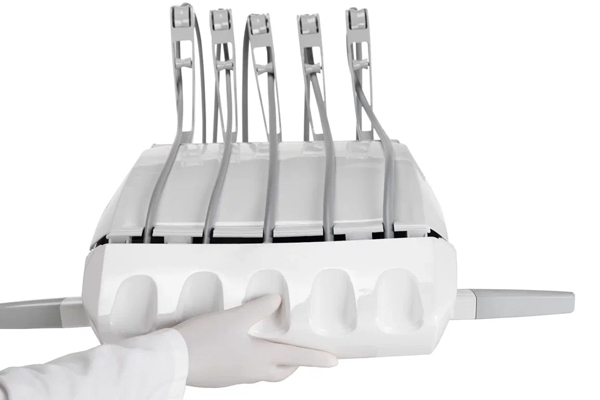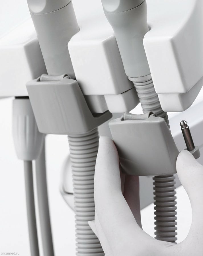 Характерная для Classe A5 гибкость также обеспечивает максимальную свободу конфигурирования со стороны ассистента. Количество доступных держателей и тип модульного манипулятора можно сконфигурировать в соответствии с потребностями медработников. Стандартный модуль с 3 держателями (с возможностью установки двойного шарнирного регулируемого по высоте рычага) поставляется в комплекте с 2 канюлями и наконечником. Вы можете выбрать один из вариантов: шприц, камера, полимеризационная лампа или динамический инструмент